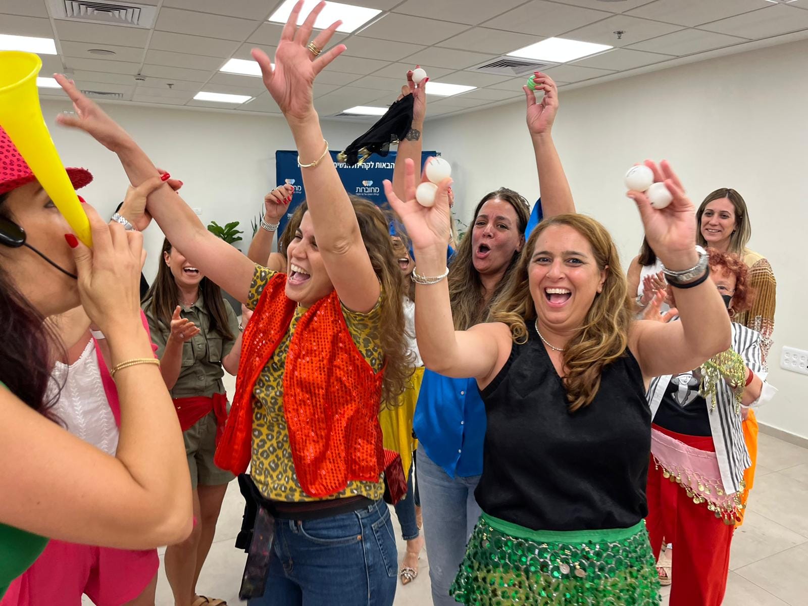 • משחקי צחוק בסגנון "סדנת צחוק" – תרגילים שיצחיקו אתכן הרבה ויגרמו גם על הדרך לקלוריות לרדת.